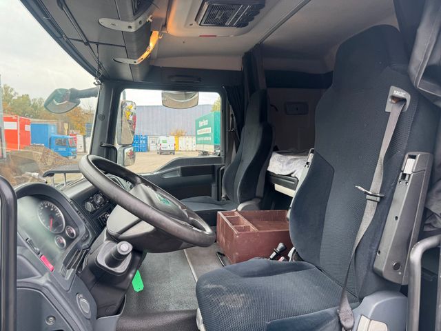 Ablagekasten, Abschlusstraverse, Antenne Autotelefon, Armlehne Fahrersitz, Audiosystem: Radio MAN CD 24V, Batterie 175 Ah, Fahrersitz Komfort, luftgefedert und beheizt, mit Lendenwirbelstütze und Schulteranpassung, Flammstartanlage, Getriebe 12-Gang - Typ: ZF 12 AS, Tipmatic, Klimaautomatik, Kraftstofftank: 300 Ltr., Lenkrad mit Multifunktion, Luftleitkörper Dach, Luftzusatzheizung Eberspächer Airtronic D2, Sitzbezug / Polsterung: Komfortqualität, Steckdose Fahrerhaus 12V und 24V, TV Tisch auf Armaturenbrett