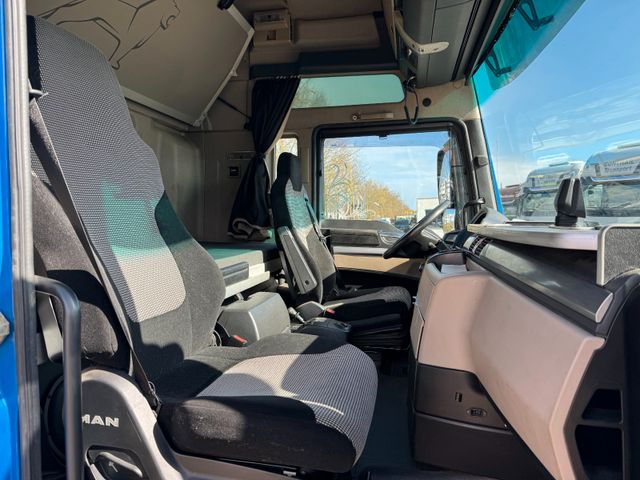 Achskonfiguration: 4x2, Ambiente-Beleuchtung, Anfahr-/Frontspiegel, Anhängersteckdose 24V / 7-polig, Antischlupfregelung (ASR), Audiosystem: Radio MAN Media Truck Advanced 12V mit Vorbereitung Navigationssystem, Außenspiegel elektr. verstell- und heizbar, Weitwinkelspiegel heizbar, Bordrechner MAN-Tronic, Bordsteinspiegel rechts, elektronisches Bremssystem MAN-Brakematic, EURO 6-Motor, Fahrerhaus: mit Isolierung Nordic, Fahrerhaus: XXL, Federung: Luft / Luft (Volluft), Fensterheber elektrisch, Fernbedienung Zentralverriegelung, Frontscheibe getönt, Generator 28 V 80 A, Getriebe 16-Gang - Typ: ZF 16 S, Karosserie/Aufbau: Sattelzugmaschine, Kipphebel - Bremse EVB, Klimaautomatik, Kraftstoff-Filter beheizt, Kraftstofftank: Kombitank - 400 Ltr. Diesel + 60 Ltr. Harnstofflösung (AdBlue), Lenkrad mit Multifunktion, Luftansaugung hochgezogen, Luftpresser 1-Zyl. 360 ccm, Motor 12,4 Ltr. - 338 kW Diesel, Motorraum-Kapselung, Radstand 3600 mm, Reserveradheber seitlich, Sattelkupplung: Jost JSK 37 C, Scheibenbremse Hinterachse, Scheibenbremse Vorderachse, Seitenscheiben hinten getönt, Sitzbezug / Polsterung: Komfortqualität, Sonnenschutzrollo Seitenscheibe, Fahrertür, Sprühnebelverminderung, Stabilisator an einer Hinterachse, Staukasten von außen zugänglich, Steuerung Typ Fahrerhaus, TGX, Türscheiben getönt, Unterfahrschutz vorn, Viscolüfter, Zentralverriegelung, Zul. Gesamtgewicht 18,00 t