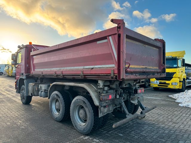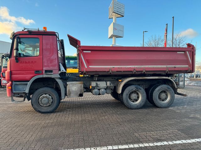 Abgasnorm EURO 5, Achskonfiguration: 6x6, Anhängerbremse 2 - Leitung, Anhängersteckdose 24V / 15-polig, Außenspiegel elektr. verstell- und heizbar, Außenspiegel Weitwinkel und heizbar, links, Außentemperaturanzeige, Batterie 165 Ah, Dachluke (Stahl), Differentialsperre Hinterachse, Differentialsperre Vorderachse, Fahrerhaus: Fahrerhauseinstieg beweglich, Fahrerhaus: Lagerung für Schlechtwege (6,0 HZ), Fahrerhaus: M (mittellang), Federung: Blatt / Blatt, Generator 80 A, Hinterachse H 7, 13 t, Tellerrad 300, Hydraulikpumpe (Meiller-Pumpe - 6 Kolben), Karosserie/Aufbau: Fahrgestell für Kipper (Zusatz-AV), Karosserie/Aufbau: Kipper, Luftfilter: Filter Baustellenfahrzeuge, Modellpflege ab 06/2008, Motor 12,0 Ltr. - 335 kW V6 Diesel (OM 501 LA), Motorbremse mit Konstantdrossel, Nebenantrieb MB 2C, Radstand 3600 mm, Rückwandfenster, Stahlfelgen 9.00x22.5, Telligent - Schaltung, Telligent Bremssystem mit ABS, Traverse für Anhängerkupplung, Trommelbremse Hinterachse, Trommelbremse Vorder- und Hinterachse, Verteilergetriebe - mit Differentialsperre, Vorbereitung CB-Funk, Vorbereitung Telefon/Fax, Wegfahrsperre, Wärmeschutzverglasung, Zentralverriegelung inkl. Schlüssel, Zul. Gesamtgewicht 33,00 t