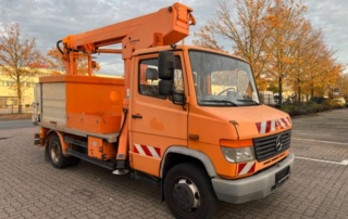 Mercedes-Benz 814D (40) deutsches Fahrzeug deutsche Papiere Ruthmann Arbeitsbühne TK 145Sonderausstattung:Differentialsperre Hinterachse, EDR mit Zwischendrehzahl-Arretierung, Rundumkennleuchte links/rechts, Schwedenklappe Fahrerhaus, Seitenanfahrschutz, Sitze im Fahrerhaus: Fahrersitz hydraulisch gefedert, Stabilisator Hinterachse, Stabilisator Vorderachse [...]