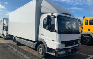 Mercedes-Benz Atego 818 (59) 3 Sitze Anhängerkupplung 2x LBW Seitentür gute ReifenSonderausstattung:Anhängerbremse 2 - Leitung, Anhängerkupplung: Abschleppkupplung, Anhängerkupplung: Zentralachsanhänger G 250, Anhängersteckdose 24V / 15-polig, Audiosystem: Radio Truckline CD 65 [...]